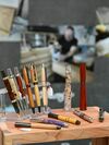 L'acquisition de nouveaux outils et la réalisation de prototypes combinants différents bois ou d'autres matériaux tels que la résine, la coquille d'huitre permet de renouveler sans cesse le plaisir de l'écriture.